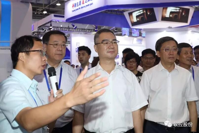 7月27日上午,在2019青島國際軟件創(chuàng)新融合博覽會上,山東省委常委、青島市委書記王清憲在青島市委常委、常務副市長薛慶國,高新區(qū)工委副書記、管委主任尚立群,青島市工信局局長姜波等領導陪同下蒞臨高新區(qū)展區(qū)軟控股份展位。
